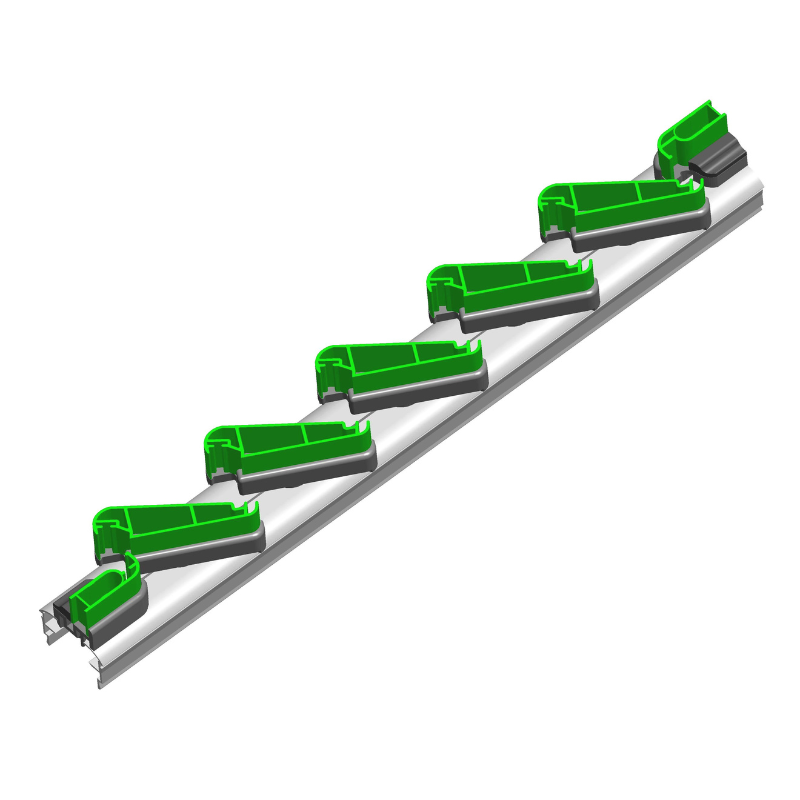 - Inserimento lamella: Include un sistema di compensazione rapida (superiore e inferiore) con spalletta mobile, che facilita l'inserimento immediato delle lamelle negli appositi tappi predisposti.